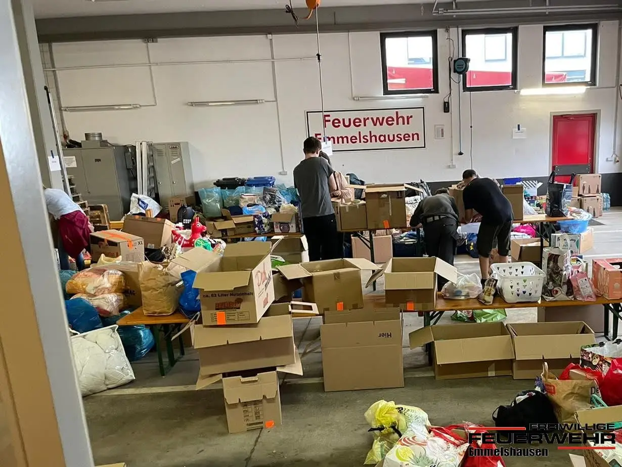 Das Gerätehaus Emmelshausen wurde zum Sammelplatz zahlreicher Spenden