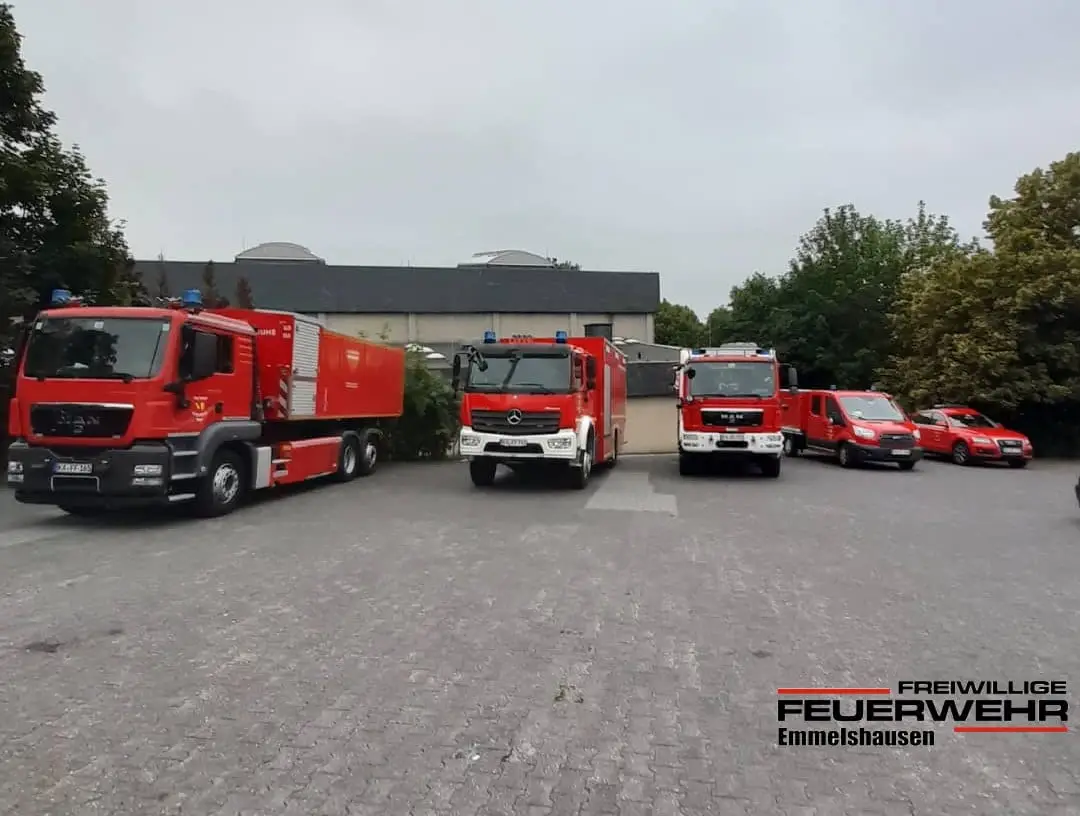 Kameraden der Freiwilligen Feuerwehr Emmelshausen am 22. März mit dem TLF 16/25, dem TSF sowie dem ,,K-Wagen"