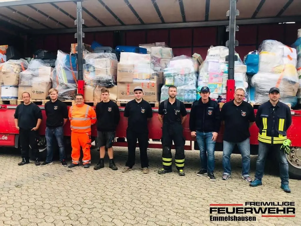 Die bereits am Vortag gesammelten Spenden konnten erfolgreich mit Hilfe eines LKWs der von der Firma DEG Alles für das Dach eG gesponsert wurde, in Richtung Ahrweiler transportiert werden.