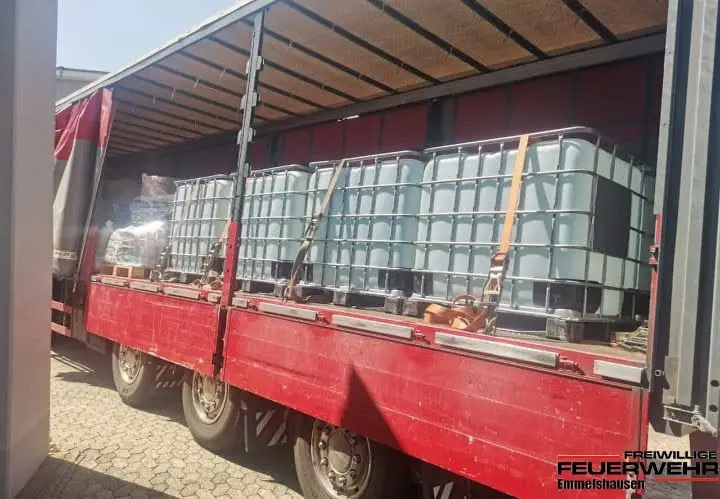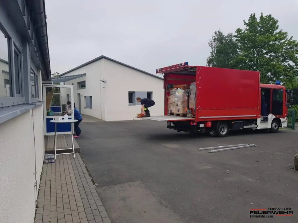 Ein weiterer LKW konnte Richtung Ahrweiler geschickt werden, dieses mal mit 8000 Litern Frischwasser und Lebensmitteln.
