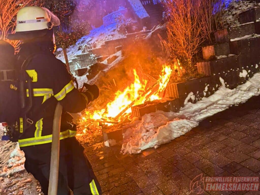 In der Nacht zu Sonntag wurde die Feuerwehr Emmelshausen zu einem brennenden Mülleimer nach Kratzenburg alarmiert. Beim Eintreffen der Einsatzkräfte standen ein Mülleimer sowie der dazugehörige Mülltonnenunterstand bereits in Brand.