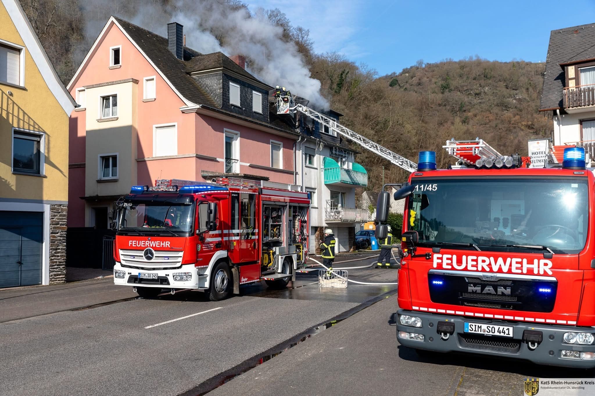 Unterstützung mit ELW und MZF bei einem Dachstuhlbrand in St. Goar