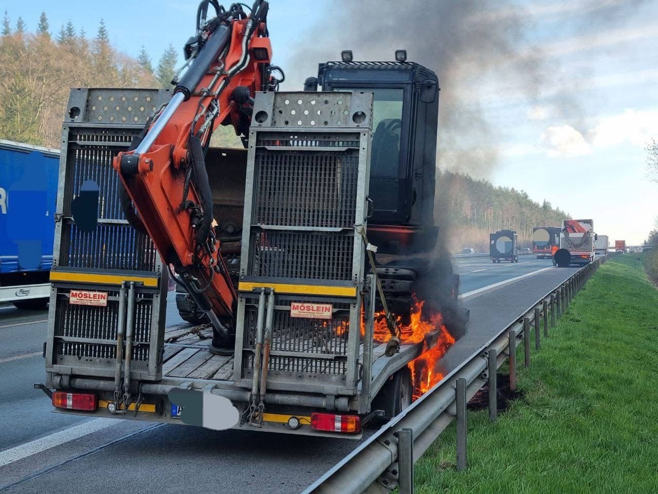 Brand eines LKW Anhängers auf der BAB 61. Die Kräfte der FW Pfalzfeld waren ausreichend, so dass wir unseren Einsatz abbrechen konnten.