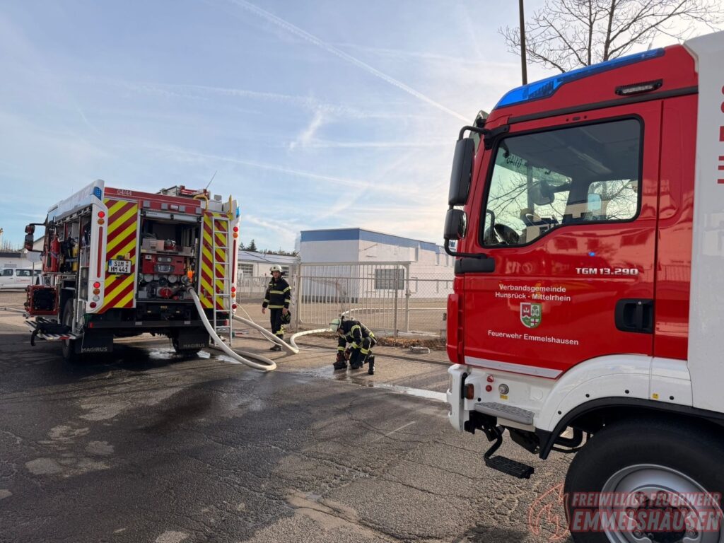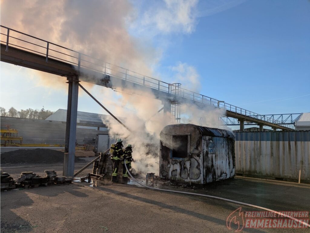 Am Morgen des Ostermontags wurden die Feuerwehren Emmelshausen und Dörth zu einem brennenden Bauwagen im Industriegebiet Dörth alarmiert.