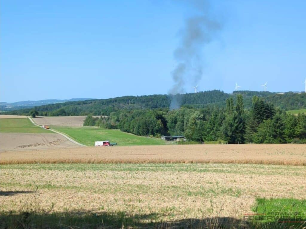 Mehrere Notrufe meldeten eine deutlich sichtbare schwarze Rauchsรคule aus einem Waldgebiet.
