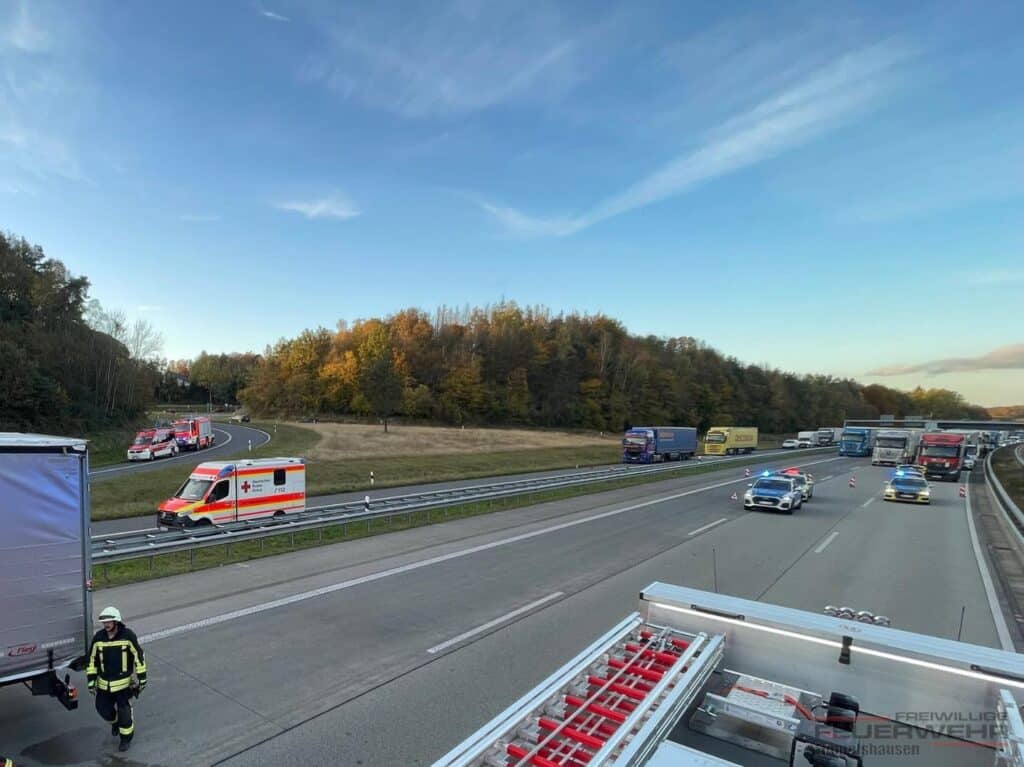 Auf der BAB 61 kam es zwischen den Anschlussstellen Waldesch und Boppard zu einem schweren Verkehrsunfall mit Beteiligung von zwei LKWs. Im hinteren der beiden LKWs war noch eine Person eingeklemmt, die mittels hydraulischem Rettungsgerรคt befreit werden musste.