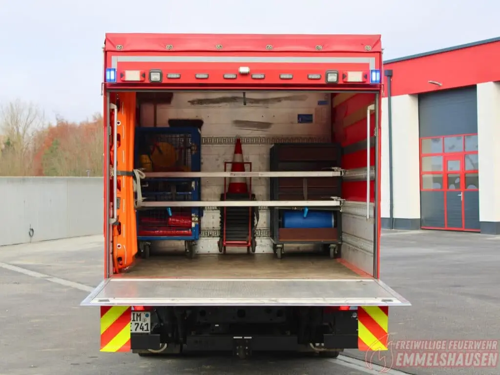 Das Mehrzweckfahrzeug ist mit einer Ladefläche und einer Ladebordwand ausgestattet und kann flexibel mit verschiedenen Rollcontainern bestückt werden. So lässt sich das Fahrzeug je nach Einsatzlage schnell an unterschiedliche Anforderungen anpassen.