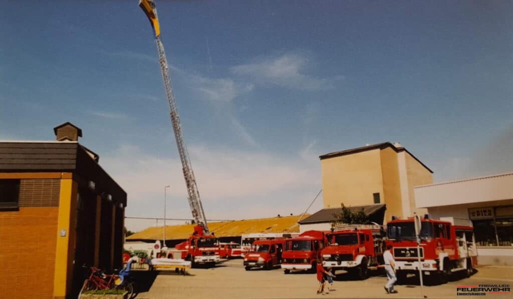 Auch in den 1990er Jahren wurde der Fuhrpark erweitert und erneuert. Mit dem neuen TLF 16/25 und dem neuen TSF standen Ersatzbeschaffungen an, der ELW und vor allem die 1997 angeschaffte Drehleiter (wenn- gleich hierfür die Anhängeleiter wegfiel) erweiterten den Fuhrpark und damit die Einsatzmöglichkeiten unserer Wehr deutlich. Mit der Gründung des Fördervereins wurden neue Möglichkeiten der Beschaffung finanzieller Mittel für Zwecke der Feuerwehr geschaffen.