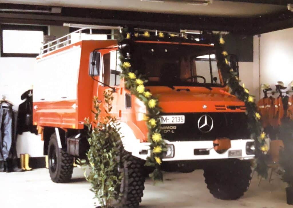 Auch Änderung im Fuhrpark standen 1993 an. Zum einen erhielt die Wehr einen neuen Ford Transit, ausgebaut als Tragkraftspritzenfahrzeug (TSF)
