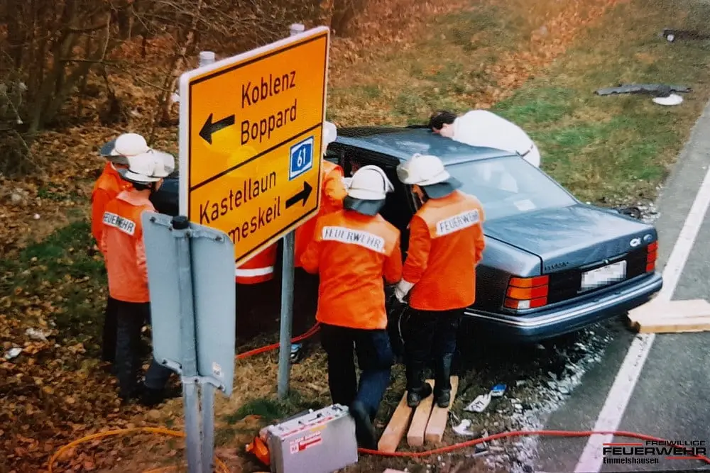 Die Alarmierung mittels über Funk ausgelöster Sirene wird durch neu angeschaffte Funkmeldeempfänger ergänzt. Erstmals ist es den Kameraden möglich, unmittelbar nach der Alarmierung das Einsatzstichwort und den Einsatzort zu erfahren, ohne erst das Gerätehaus anfahren zu müssen. Beim Versuch, einen Bus zu überholen kollidierte am 19. Februar auf der L 213 bei Karbach ein PKW-Fahrer mit einem entgegenkommenden PKW. Der Fahrer des entgegenkommenden PKW wurde schwer verletzt und in seinem Fahrzeug eingeklemmt. Die Feuerwehr Emmelshausen befreite ihn aus dem Fahrzeug und übergab ihm dem Rettungsdienst. Laut Zeitungsberichten erlitt der Unfallverursacher nur leichte Verletzungen. Sein Fahrzeug war bereits mit einem Airbag ausgerüstet. Am 8. August kam ein 20jähriger Autofahrer auf der B327 in den Gegenverkehr und kollidierte mit dem Wagen eines 28jährigen. Der Unfallverursacher verstarb noch an der Unfallstelle, sein Beifahrer sowie der entgegenkommende Fahrer wurden schwer verletzt. Unsere Wehr befreite einen der Schwerverletzten aus dem Fahrzeugwrack, in dem er eingeklemmt war.