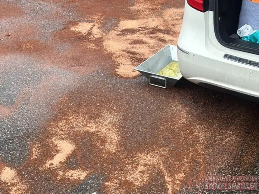 Auslaufende Betriebsstoffe aus einem PKW auf dem Parkplatz Marienau. Der betroffene Bereich wurde mittels Bindemittel abgestreut
